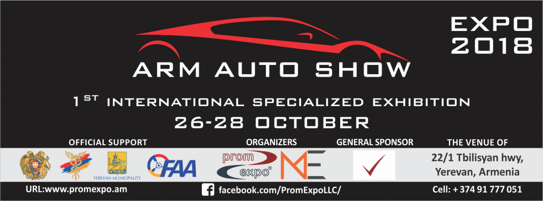 Arm Auto Show Expo 2018 Сентябрь 26, 2018 https://www.promexpo.am/exhibition.php?ex=auto Подробная информация Начало Октябрь 26, 2018 Конец Октябрь 28, 2018 Категория Выставки